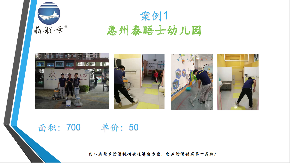 晶航始終堅持“以技術求生存、以市場為向導、以人為本、以服務為宗旨,求真務實”的經營理念,引進ISO9001品質管理模式和ISO14001環(huán)境認證。以雄厚的實力,超前的市場意識,敏捷的科學決策,致力于成為中國防滑事業(yè)領域的領航者和創(chuàng)新者,為人們的行走安全貢獻我們的力量!